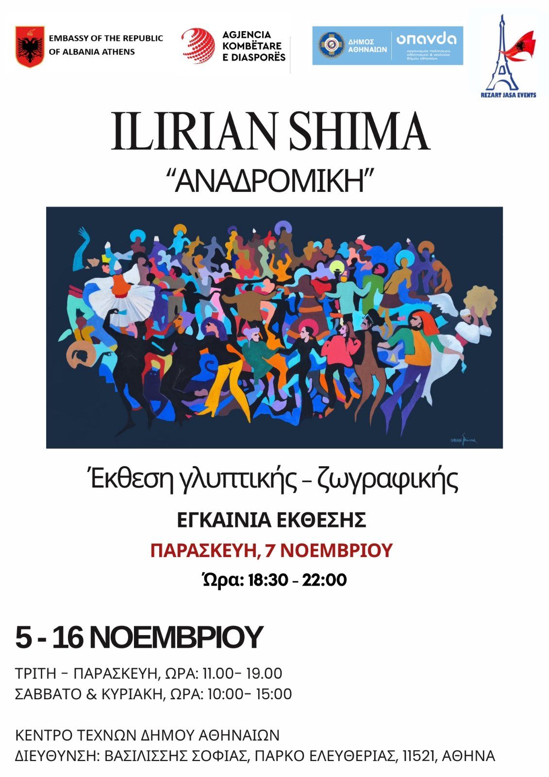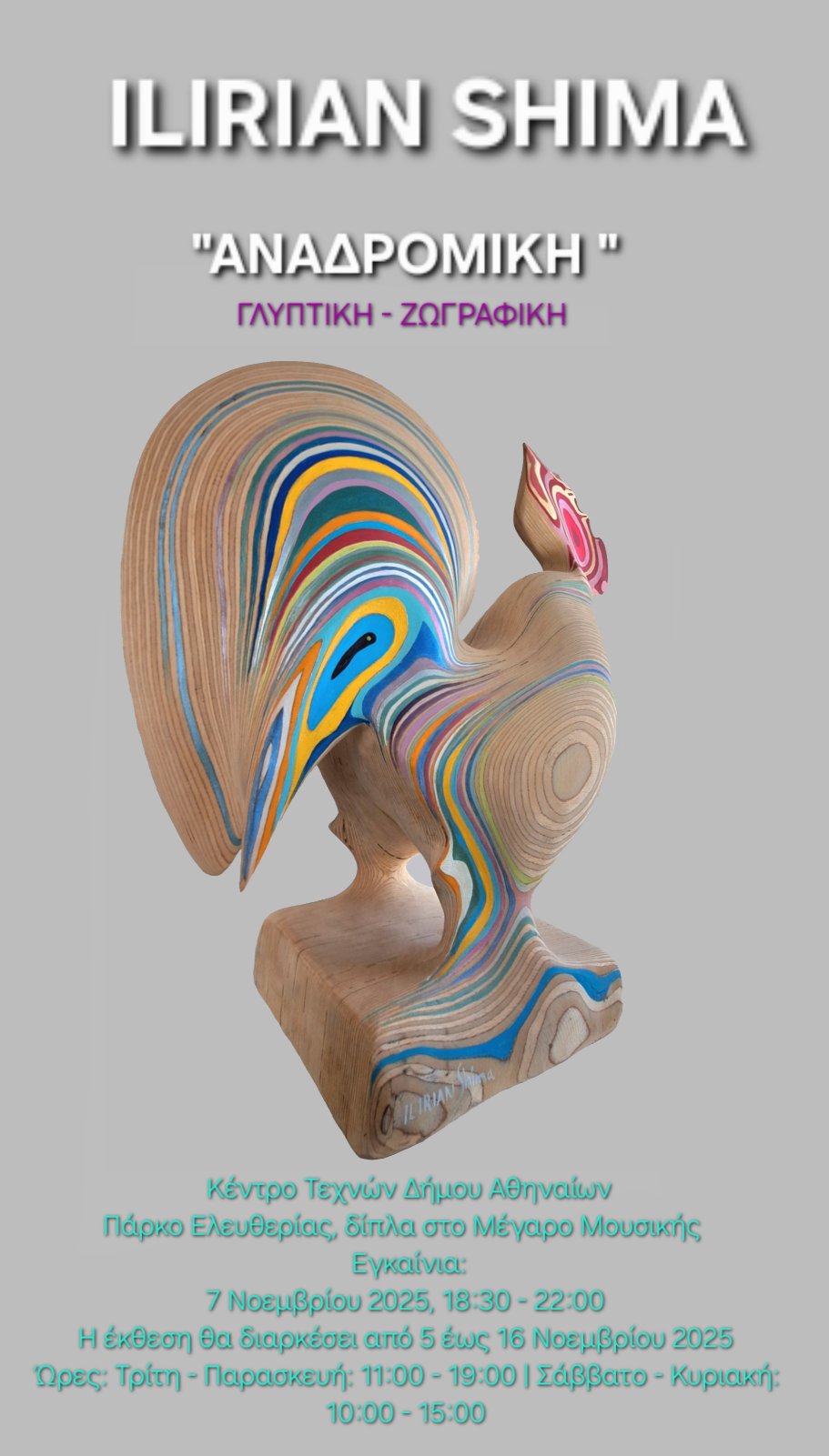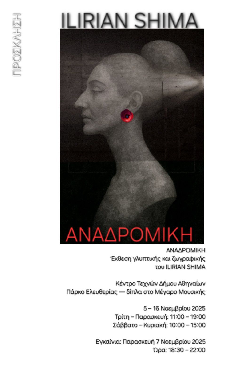From November 5 to 16, 2025, the Athens City Arts Center at Eleftherias Park hosts the solo exhibition of international artist Ilirian Shima, entitled "Retrospective".